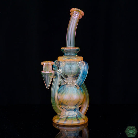 Prophecy Glass Recycler #9 - 14MM Dual Uptake Dab Rig with Artistic Design and Smooth Pulls